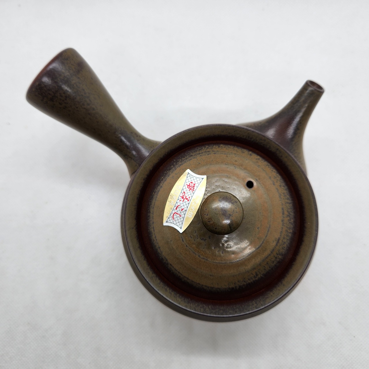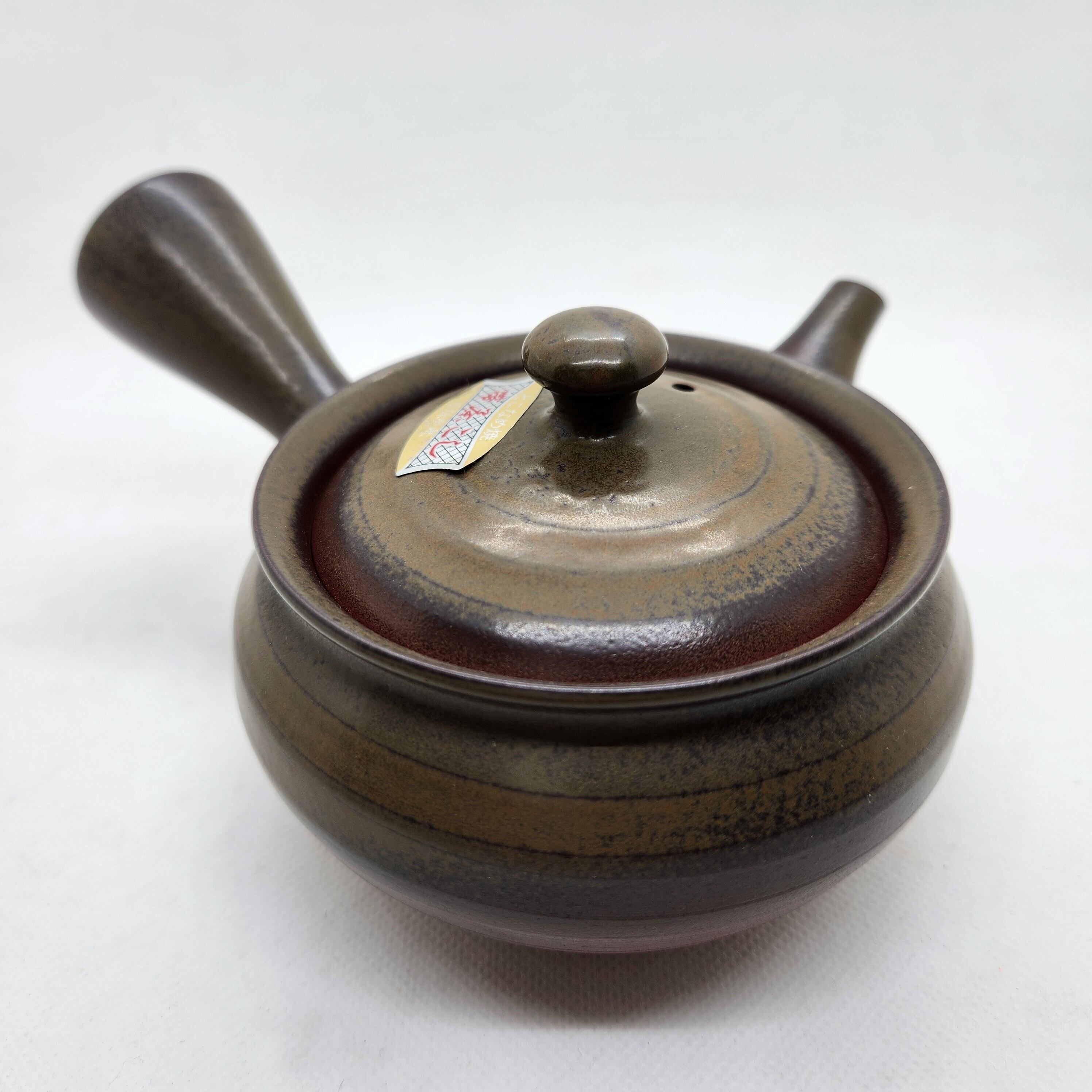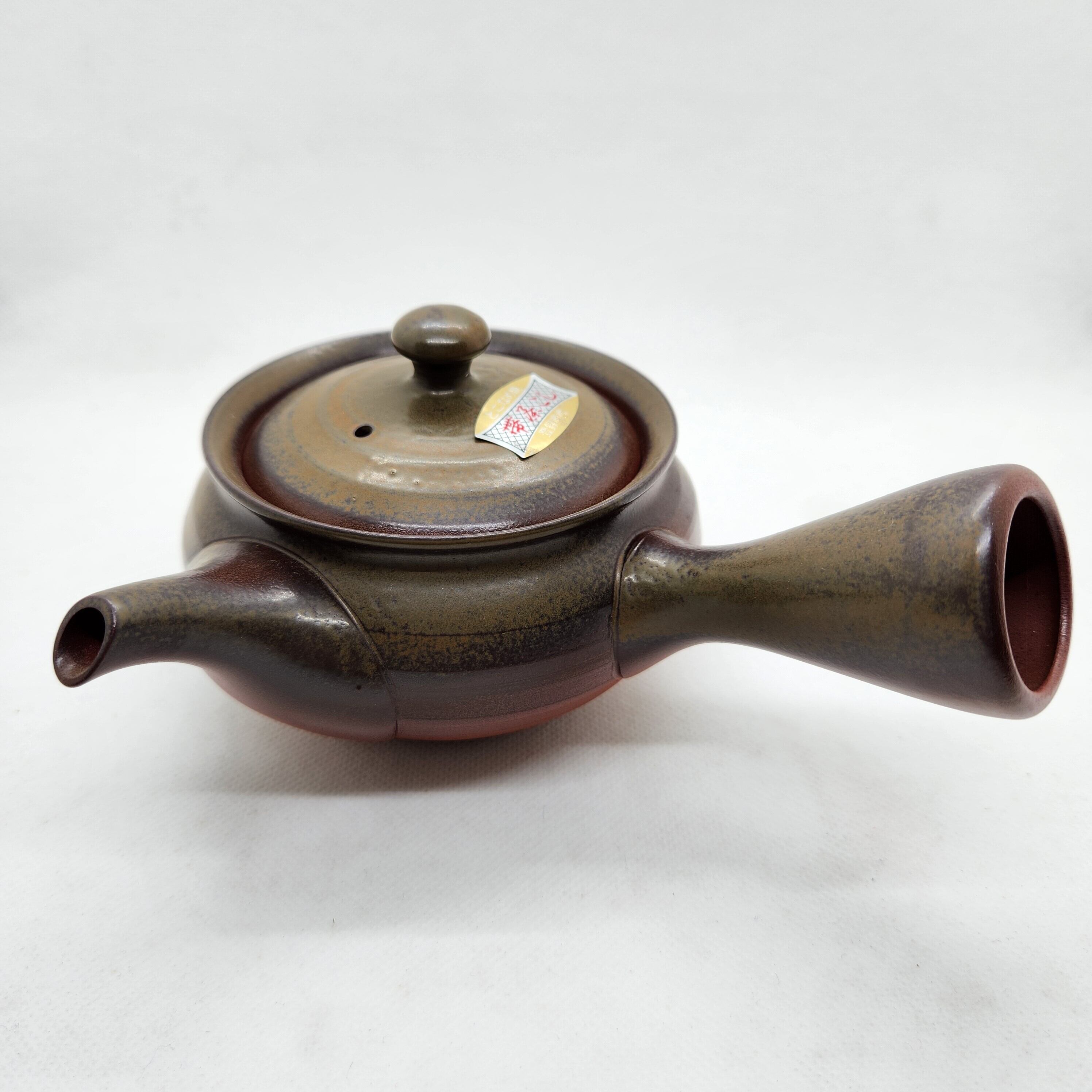 常滑焼 宇幸作 灰釉帯網急須