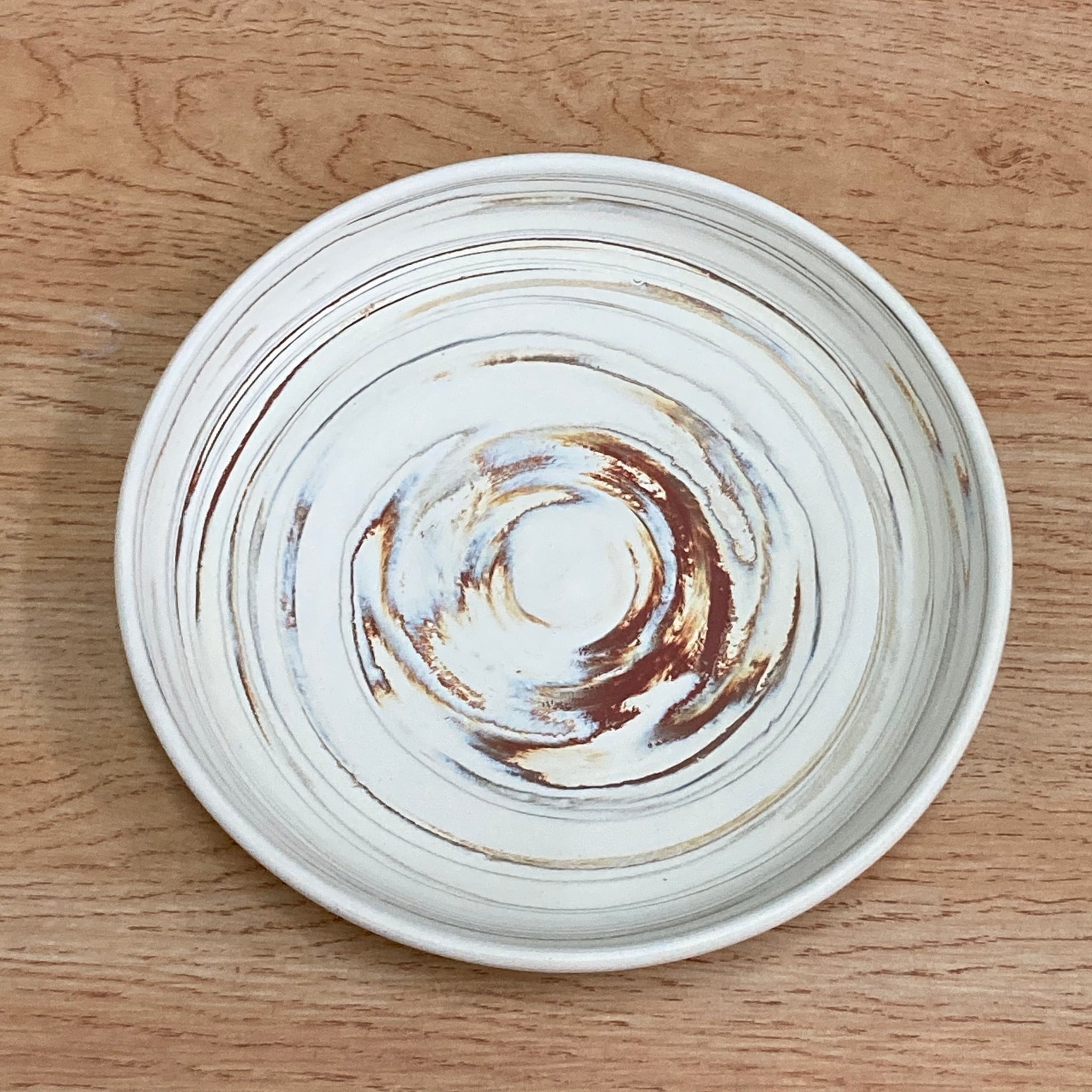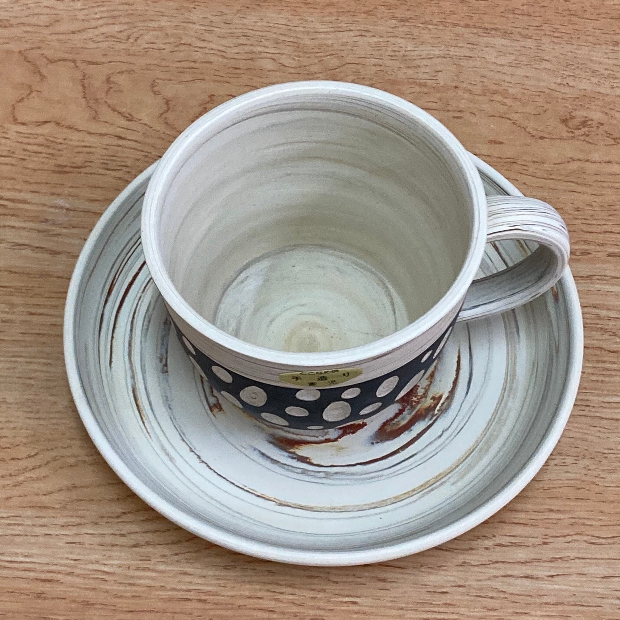 数色の土を合わせてロクロでひいた、練り込み手法のカップです。