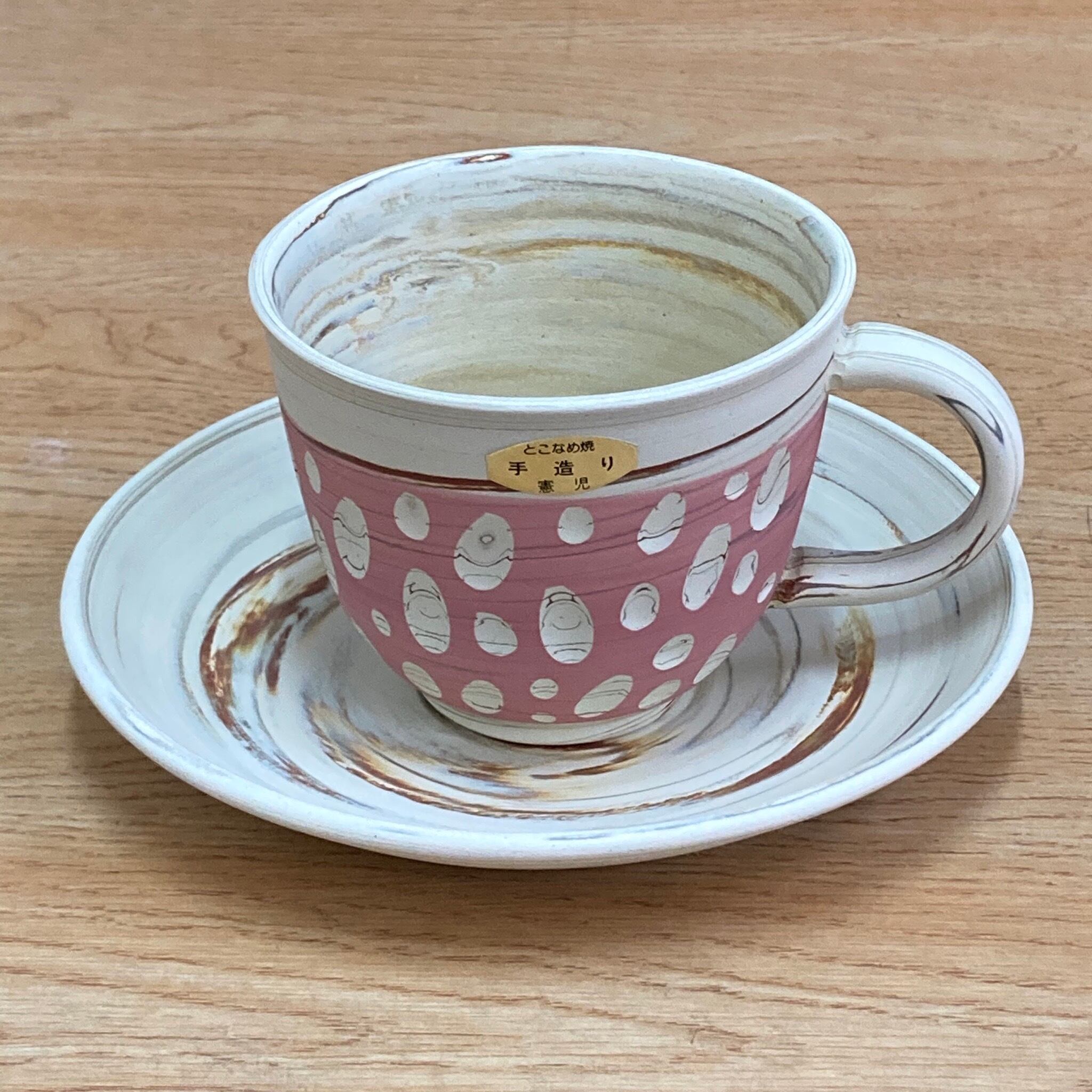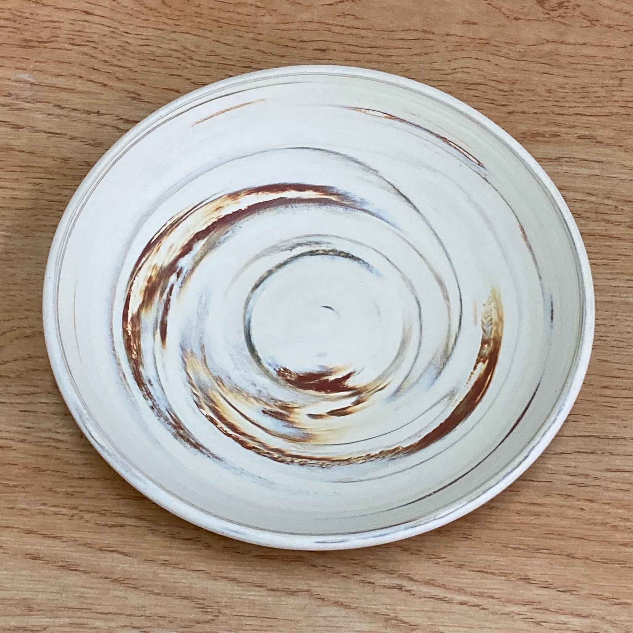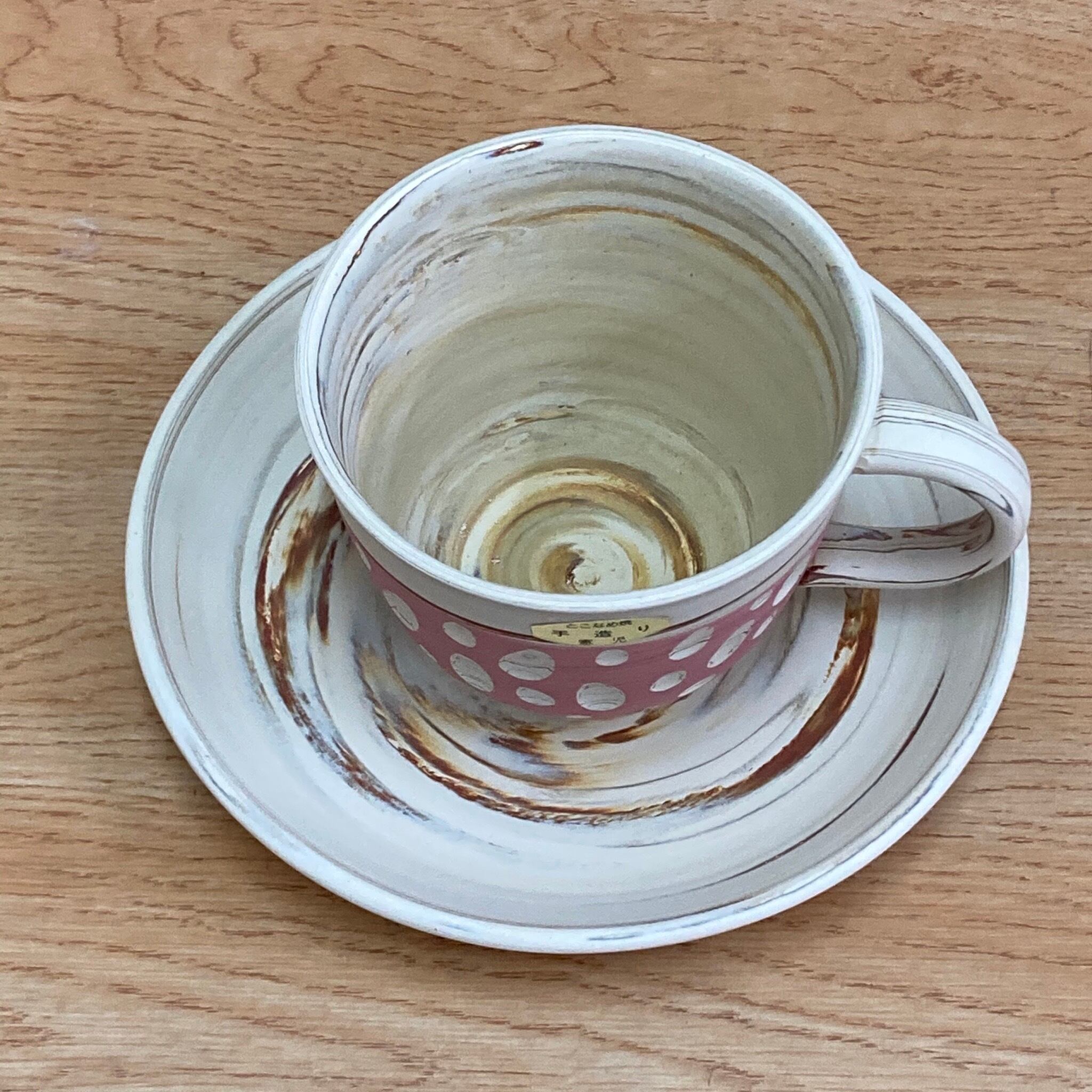 数色の土を合わせてロクロでひいた、練り込み手法のカップです。