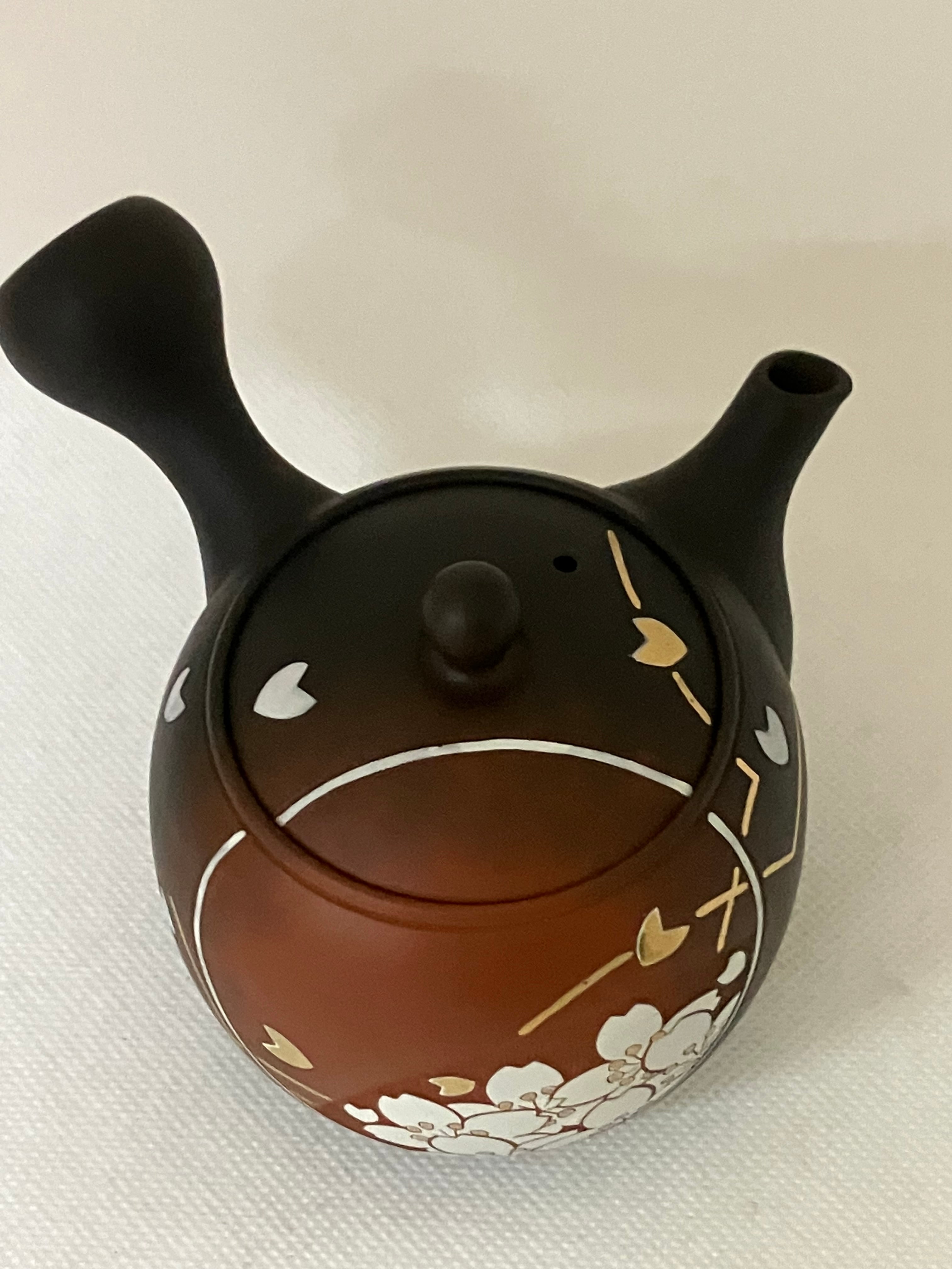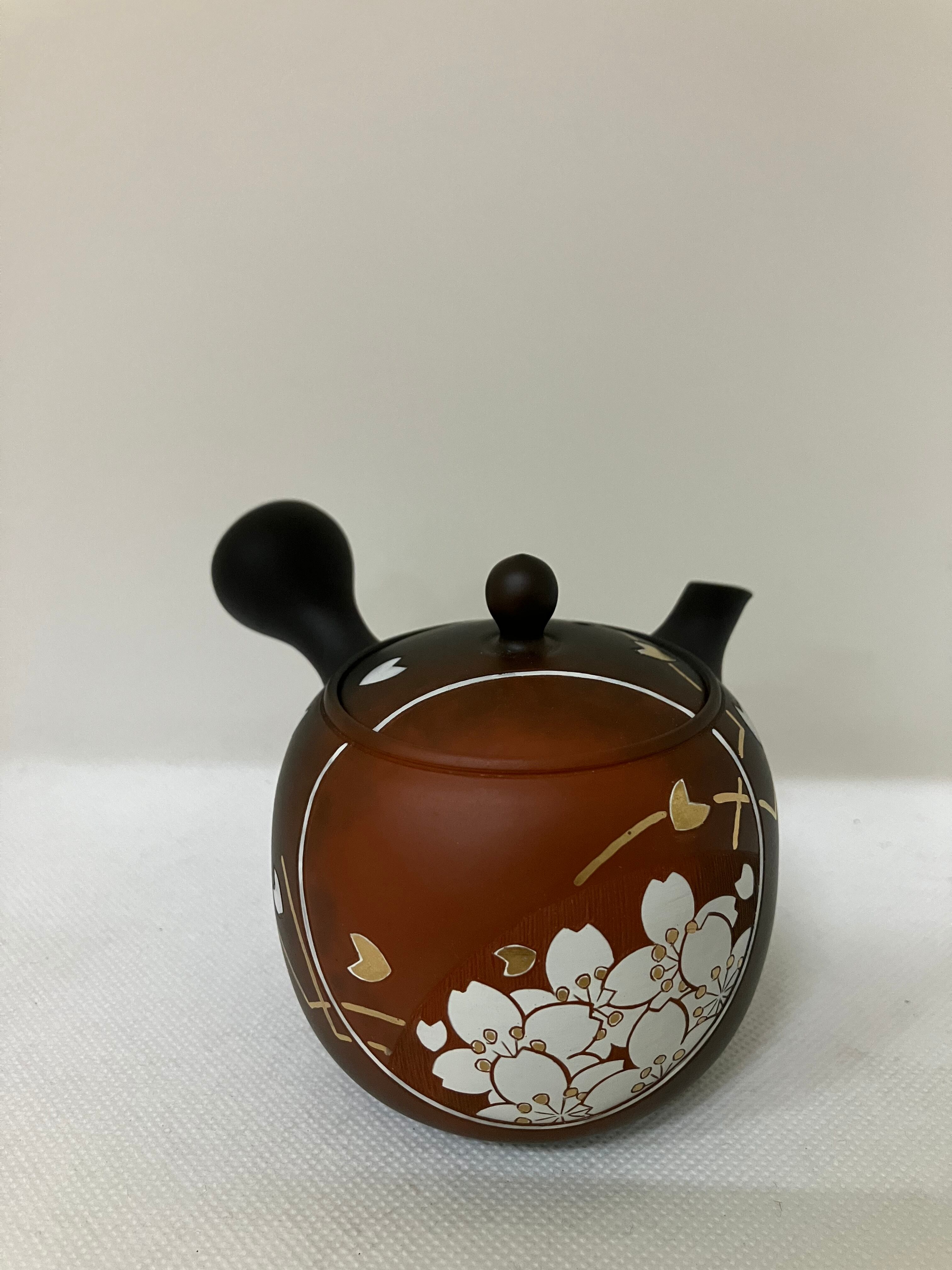 常滑焼作家、宗則作の手造り桜彫り急須です。